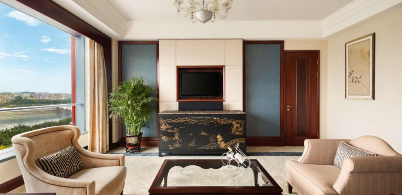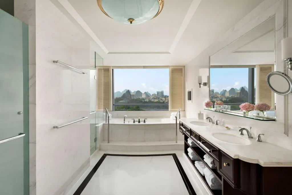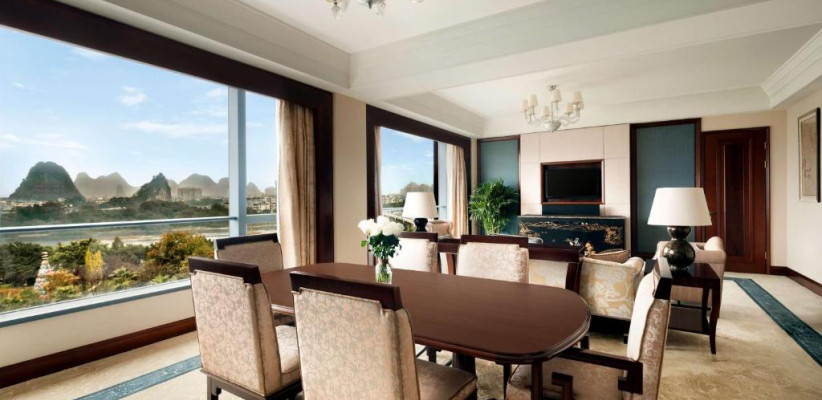 Shangri-La Guilin расположен на берегу живописной реки Ли в окружении зелёных садов и уникальных карстовых пейзажей. Это не просто отель, а целый комплекс для отдыха всей семьи с мини-зоопарком, ботаническим садом и множеством развлечений для детей и взрослых. До международного аэропорта Гуйлиня – около 45 минут езды. В отеле 439 номеров, включая семейные и номера с террасами с видом на горы. Гостям предлагается высокий уровень сервиса, изысканная кухня, современный фитнес-центр и роскошный спа-комплекс.