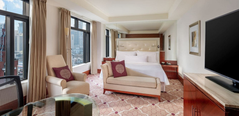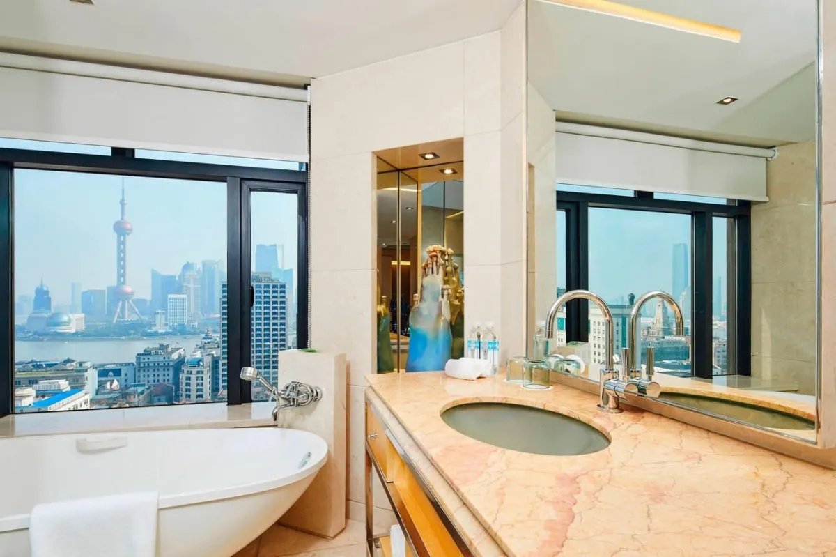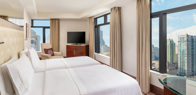 The Westin Bund Center Shanghai состоит из двух архитектурно выразительных башен и предлагает номера и люксы в элегантном стиле, с окон которых открываются панорамные виды на город.