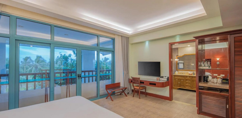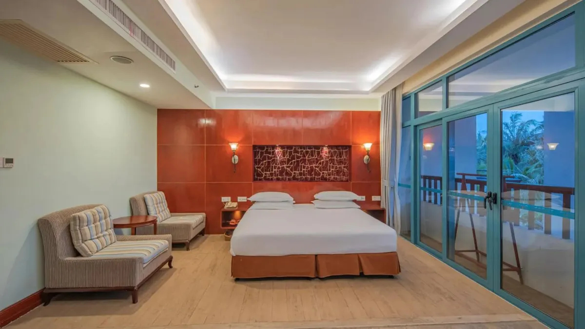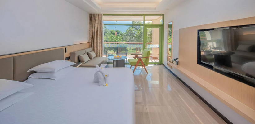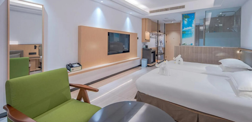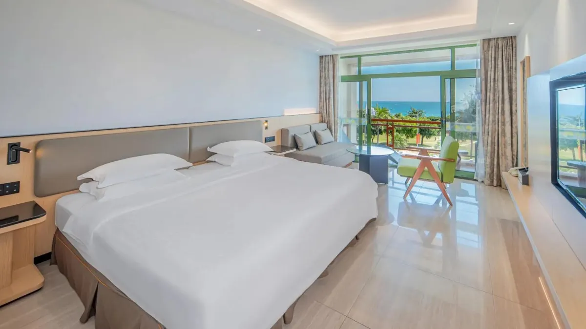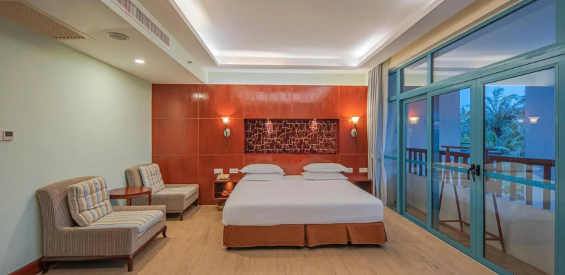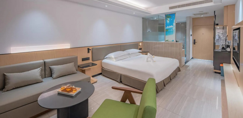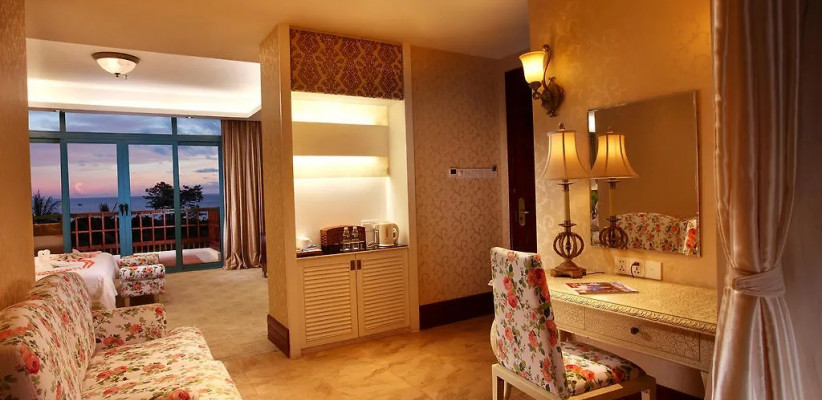 Отель Palm Beach Resort Yalong Bay (ex. Tianhong Resort) 5* – это курортный комплекс, расположенный в живописной бухте Ялонг Бэй на острове Хайнань. Он находится вблизи пляжа, в окружении пальм и ухоженного сада. В отеле 73 номера, интерьеры которых выполнены в светлых тонах, создающих ощущение простора и уюта. Туристам доступны разнообразные удобства: большой открытый бассейн с детской зоной и горкой, фитнес-центр, сауна, рестораны китайской и международной кухни, пляжный бар, детская игровая площадка. Отель Palm Beach Yalong Bay пользуется особой популярностью у семей с детьми благодаря множеству развлечений, развитой инфраструктуре и удобному расположению. Отель Palm Beach Resort Yalong Bay отлично подходит для спокойного пляжного отдыха.