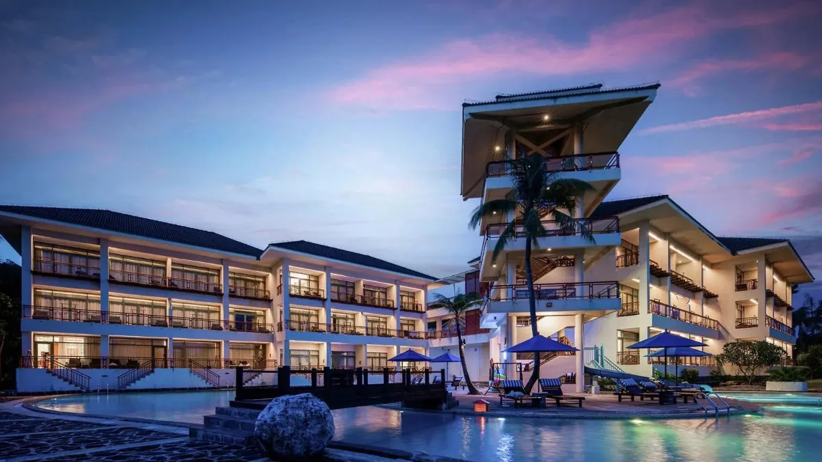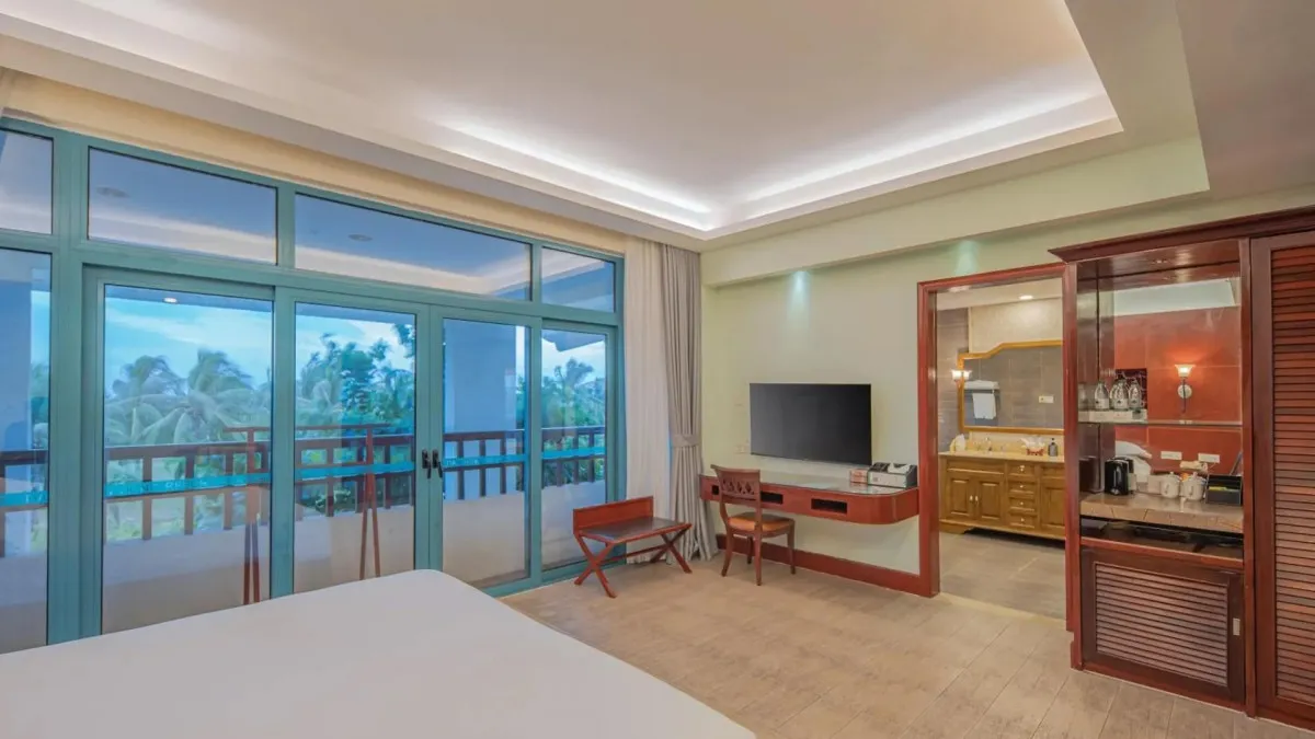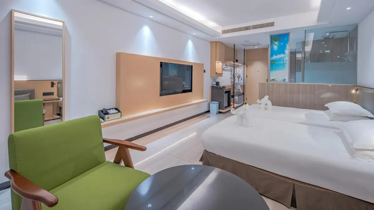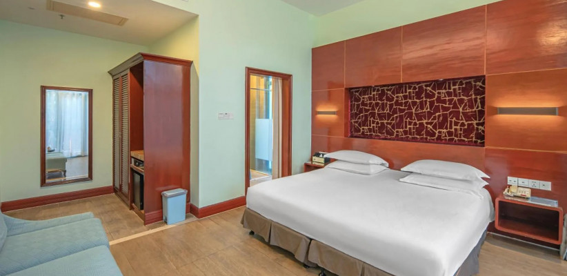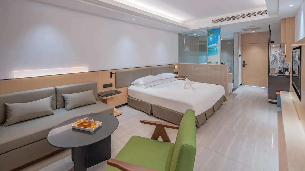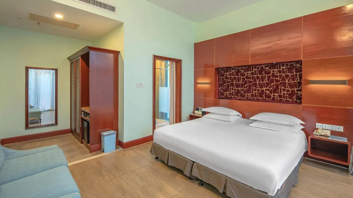 Отель Palm Beach Resort Yalong Bay (ex. Tianhong Resort) 5* – это курортный комплекс, расположенный в живописной бухте Ялонг Бэй на острове Хайнань. Он находится вблизи пляжа, в окружении пальм и ухоженного сада. В отеле 73 номера, интерьеры которых выполнены в светлых тонах, создающих ощущение простора и уюта. Туристам доступны разнообразные удобства: большой открытый бассейн с детской зоной и горкой, фитнес-центр, сауна, рестораны китайской и международной кухни, пляжный бар, детская игровая площадка. Отель Palm Beach Yalong Bay пользуется особой популярностью у семей с детьми благодаря множеству развлечений, развитой инфраструктуре и удобному расположению. Отель Palm Beach Resort Yalong Bay отлично подходит для спокойного пляжного отдыха.