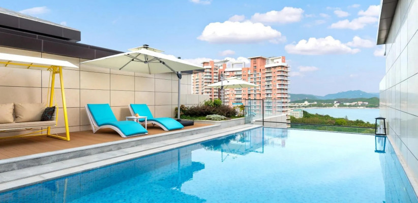 Voco Sanya Dadonghai By IHG – пятизвездочный отель, расположенный в живописном районе города Санья. Из окон открывается захватывающий вид на ухоженный сад и море, а всего в 10 минутах езды находится знаменитый парк Luhuitou.