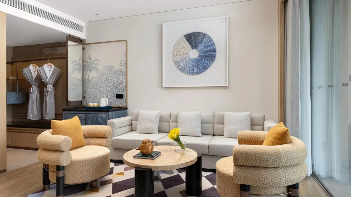 Отель Voco Sanya Dadonghai By IHG предлагает размещение в комфортабельных номерах, каждый из которых оборудован балконом и оснащен звуконепроницаемыми окнами.