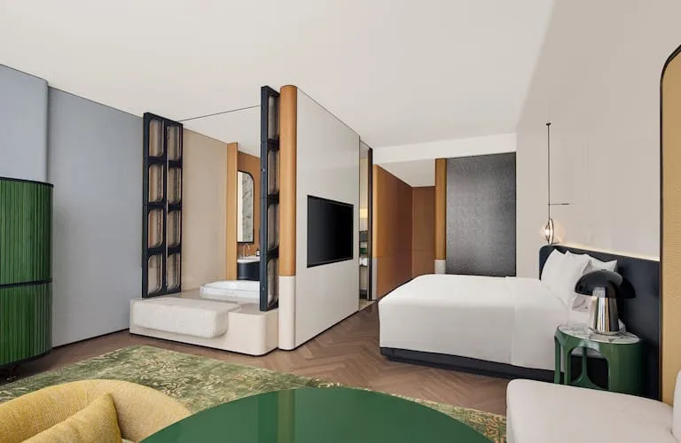Waldorf Astoria Shanghai Qiantan – отель с видом на тихую реку Хуанпу и район Цяньтань. Помимо изысканных ресторанов и прекрасных площадок для мероприятий, отель также предлагает СПА-центр с полным спектром услуг, крытый бассейн и фитнес-центр.