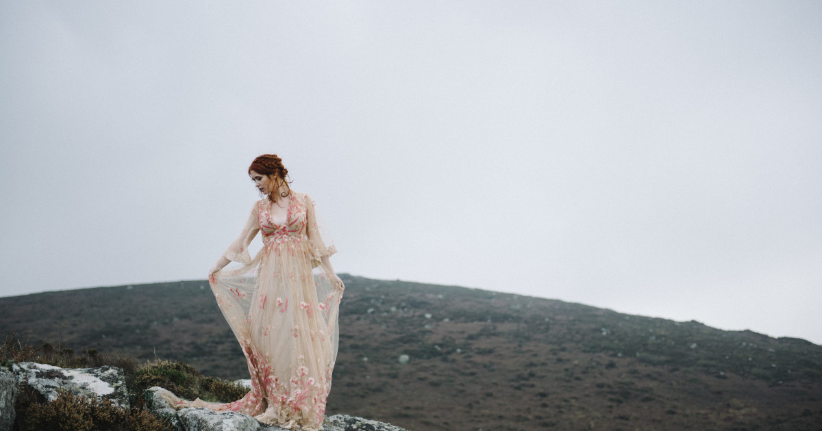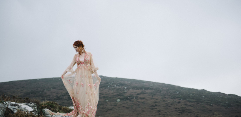 Катание на лошадях в цветущих долинах (фото в платьях с развевающимися рукавами).