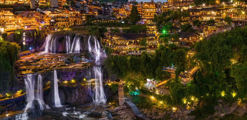 - ночная экскурсия по комплексу с необычным названием «Семьдесят две волшебные башни» – самое высокое висячее архитектурное сооружение в мире, издалека напоминающее подвешенную в воздухе крепость Туцзя. Здесь можно посетить Чайный домик, площадь костров, различные выставки, попробовать местую кухню, приобрести сувениры и погрузиться в культуру и наследия региона