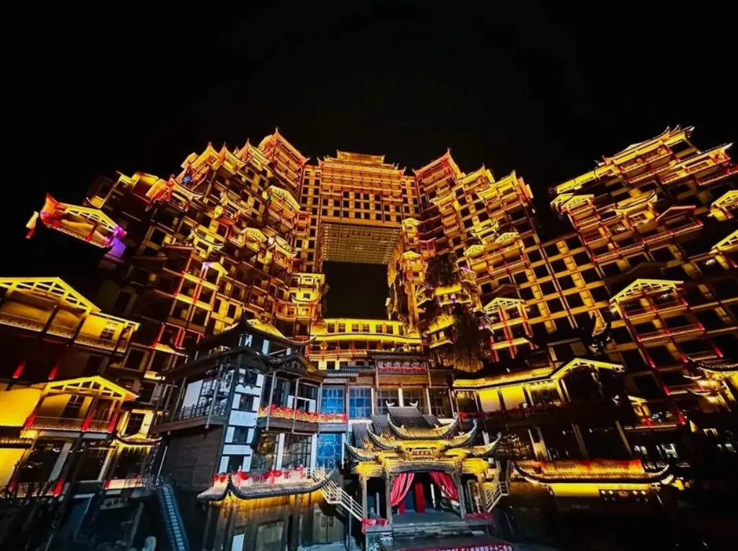 - ночная экскурсия по комплексу с необычным названием «Семьдесят две волшебные башни» – самое высокое висячее архитектурное сооружение в мире, издалека напоминающее подвешенную в воздухе крепость Туцзя. Здесь можно посетить Чайный домик, площадь костров, различные выставки, попробовать местую кухню, приобрести сувениры и погрузиться в культуру и наследия региона