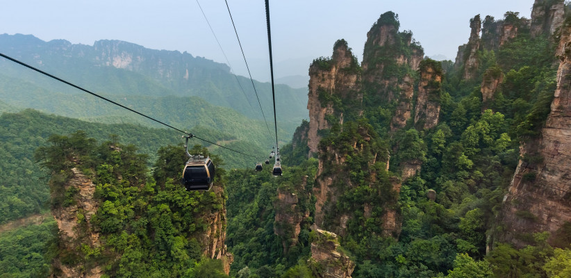 - спуск по канатной дороге на горе Тяньцзышань, где открывается потрясающий вид на пейзажи парка