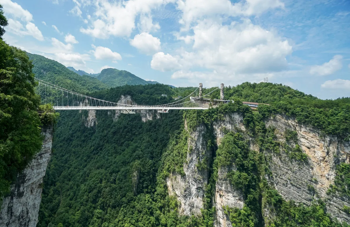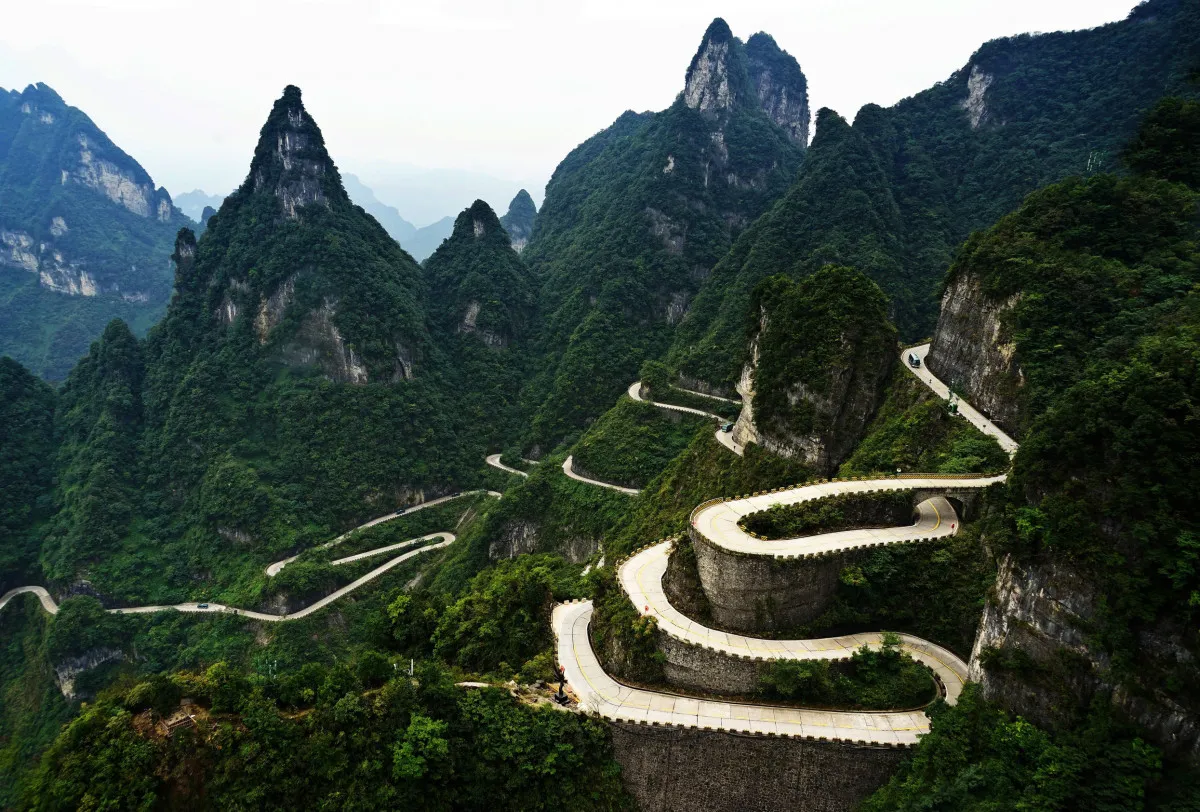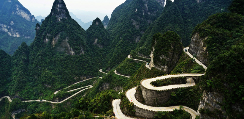Посещение национального лесопарка Тяньмэньшань. Здесь находятся природный карстовый тоннель «Небесные врата» – самый высокогорный в мире, и «Путь в небо» – извилистая дорога с 99 поворотами.