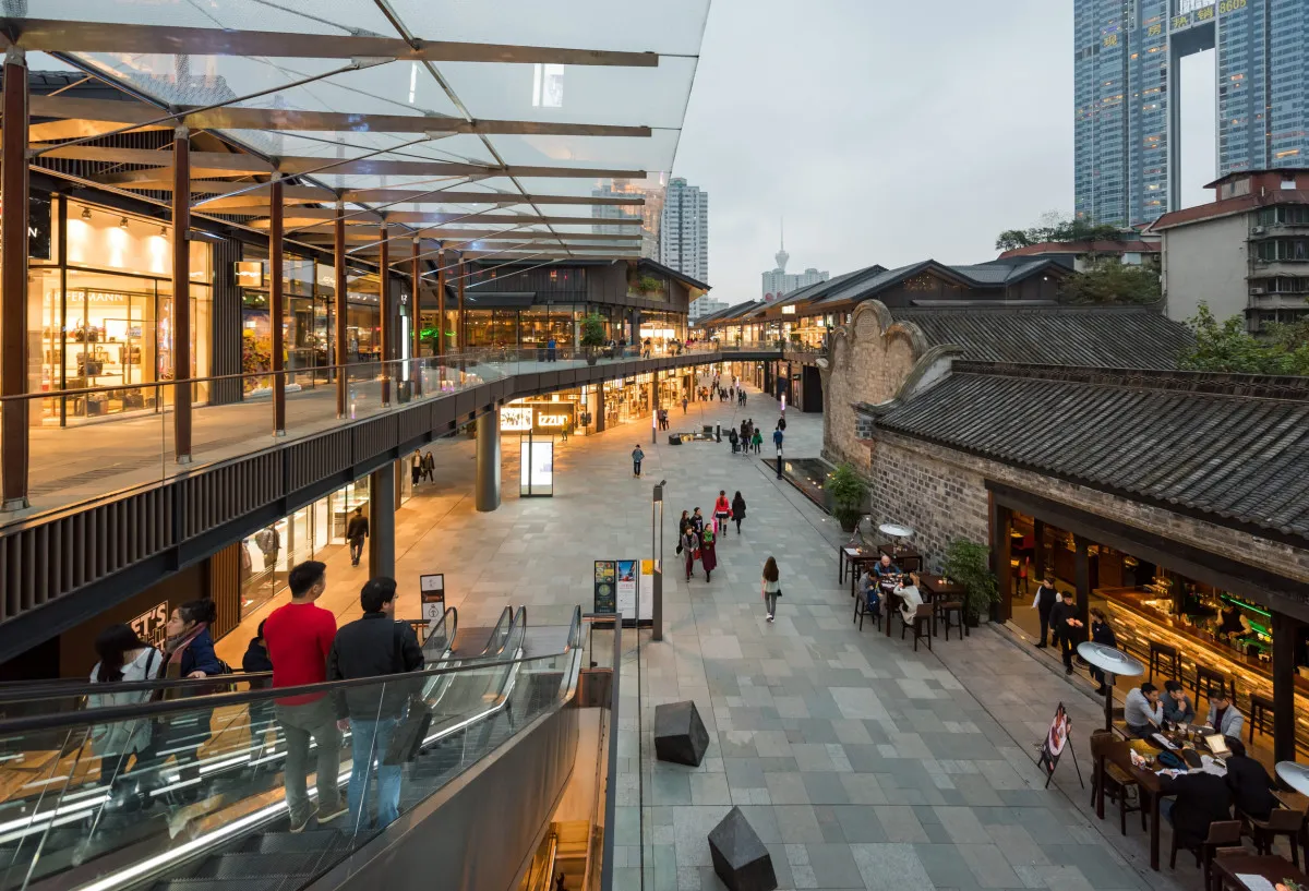 - ТЦ Sino-Ocean Taikoo Li – популярное место в Чэнду, открытый квартал, где элегантные бутики соседствуют с тысячелетним храмом Дацы. Каменные аллеи, бамбуковые сады и скрытые дворы создают ощущение спокойной и стильной деревни