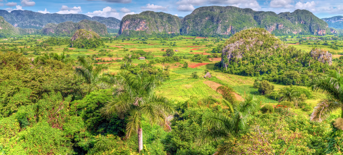 Виньялес — живописный курортный городок на западе Кубы, знаменитый своими зелёными долинами, скалистыми холмами-моготами и атмосферой неспешной сельской жизни. Это место словно сошло с открытки: табачные плантации, тропические пейзажи и красные грунтовые дороги создают уникальный колорит. Курорт популярен среди любителей экотуризма и тех, кто ищет аутентичную Кубу вдали от шумных пляжей.