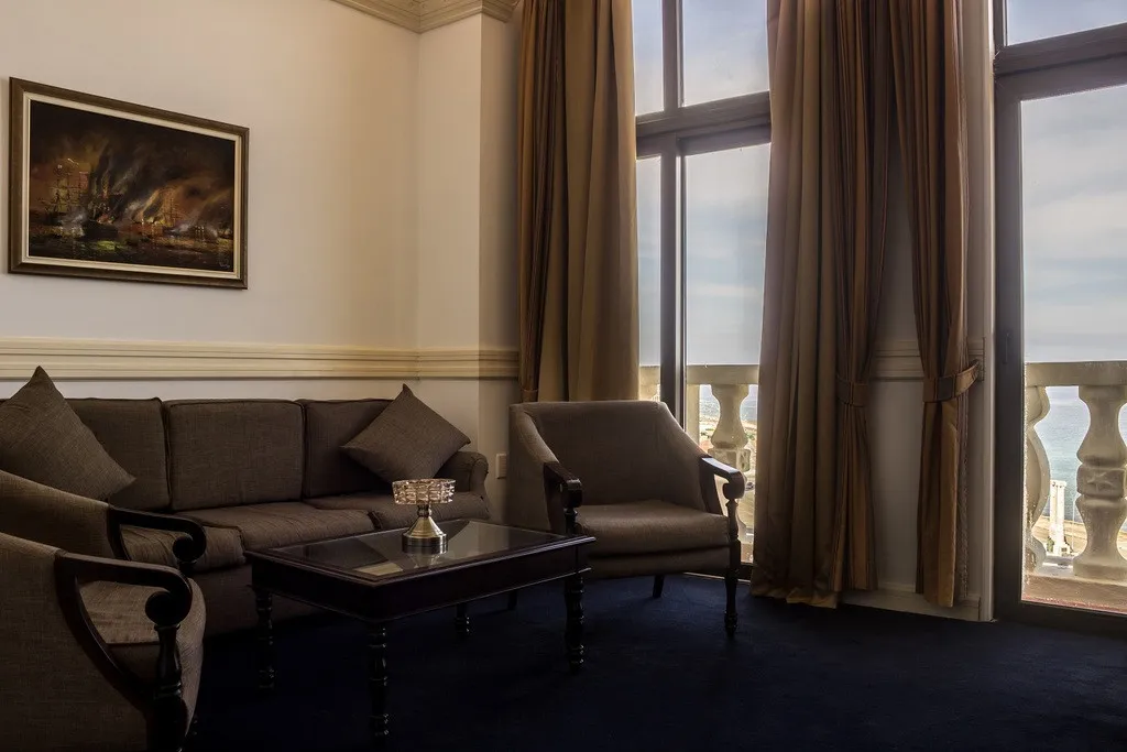 62 м2, люкс с видом на залив, спальней, гостиной и ванной комнатой. Максимальное количество гостей: 2 взрослых и 1 ребенок до 2 лет.Senior suite