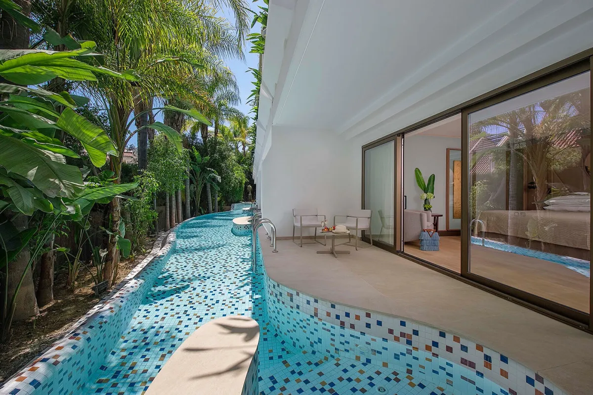 36 м2, номер с кроватью king-size, ванной комнатой со спа-ванной Villeroy & Boch и душем с хромотерапией, а также выходом к бассейну у террасы. Максимальное количество гостей: 2 взрослых.Family Beach Studio – Ground Floor