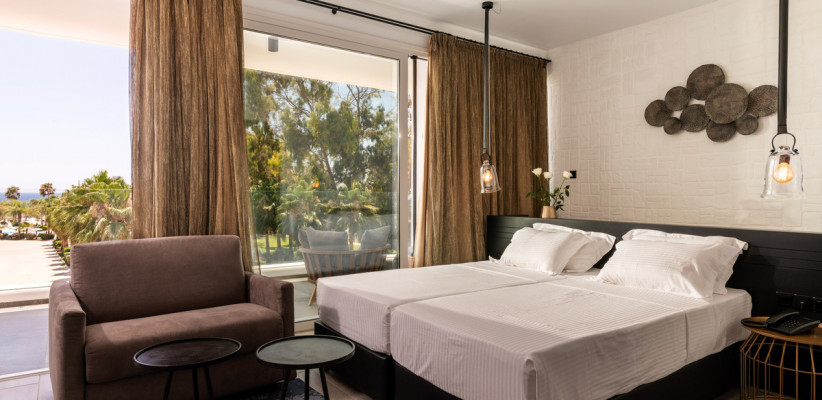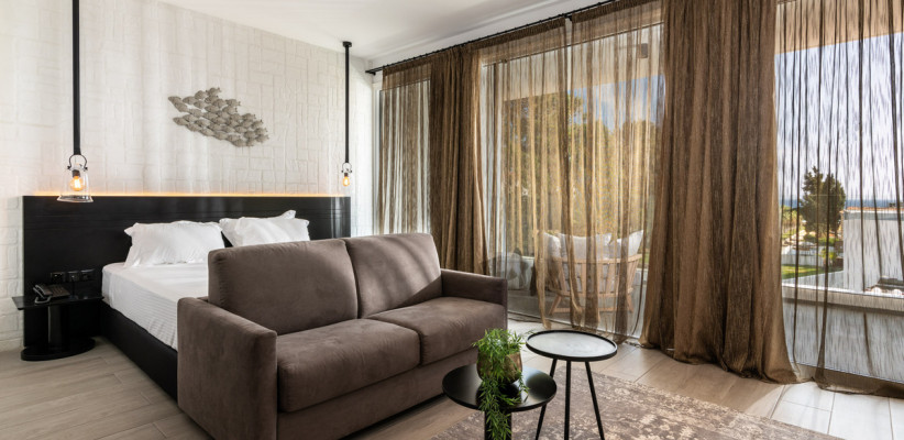 25 м², вид на бассейн, две односпальных или двуспальная кровать, рабочая зона, балкон. Количество гостей: 2.Люкс