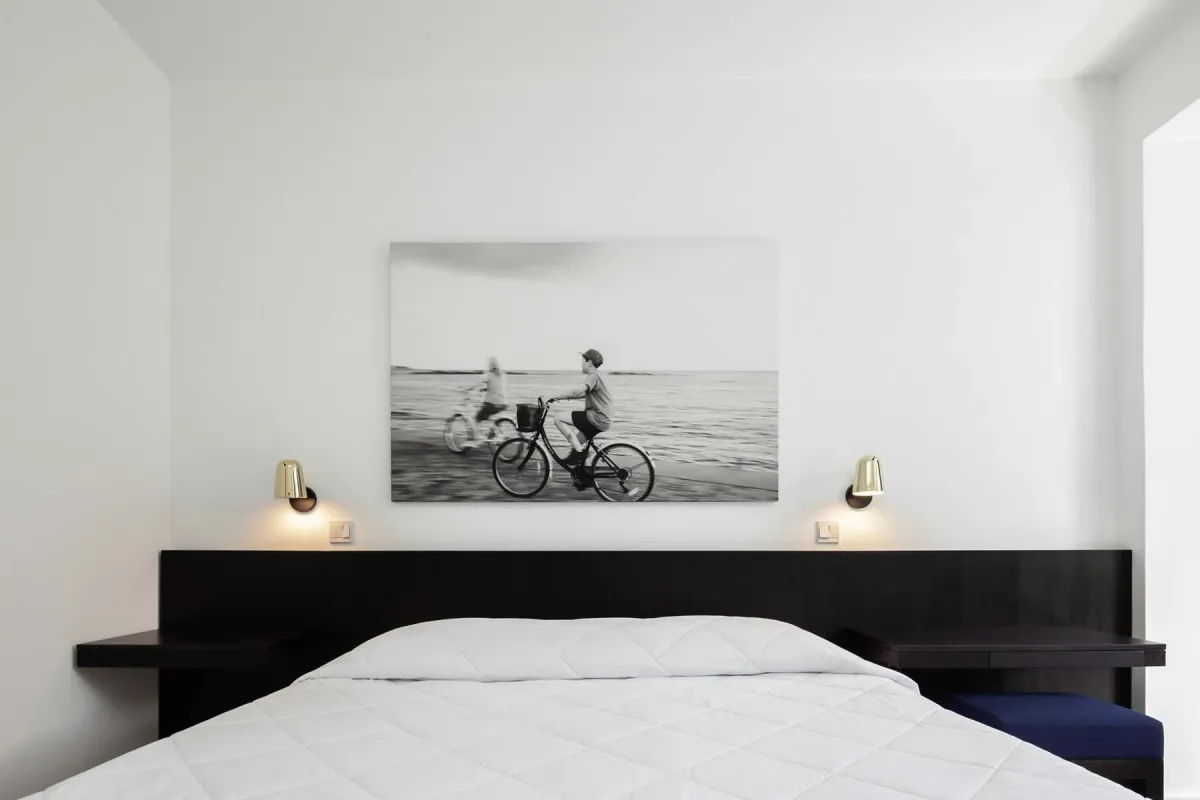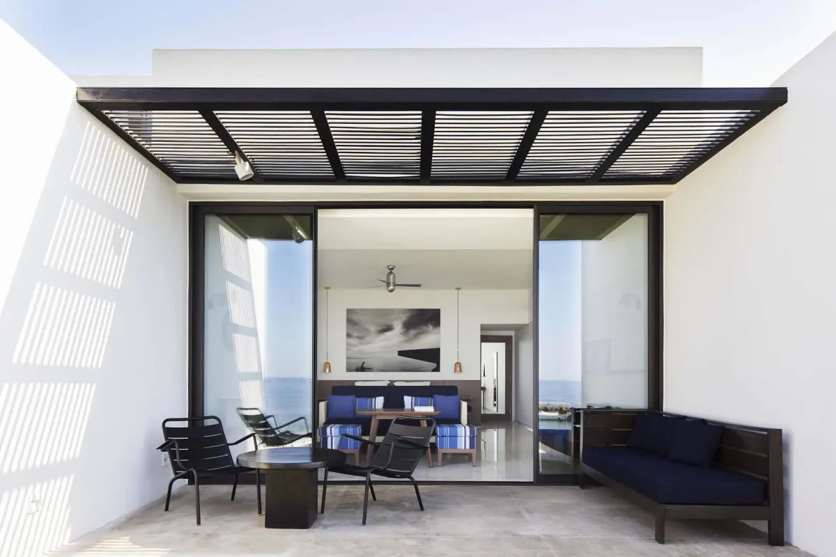 47 м2, мебелированная терраса с видом на море, спальня с двуспальной кроватью, гостиная зона. Максимальное количество гостей: 3.Deluxe One Bedroom/ Однокомнатный делюкс