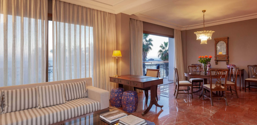 60 м2, люкс на верхнем этаже с одной спальней, видом на море, гардеробной, гостиной, совмещенной со столовой, балконом, ванной комнатой, джакузи. Возможна установка детской кровати. Максимальное количество гостей: 3.Two Bedroom Deluxe Sea View Suite