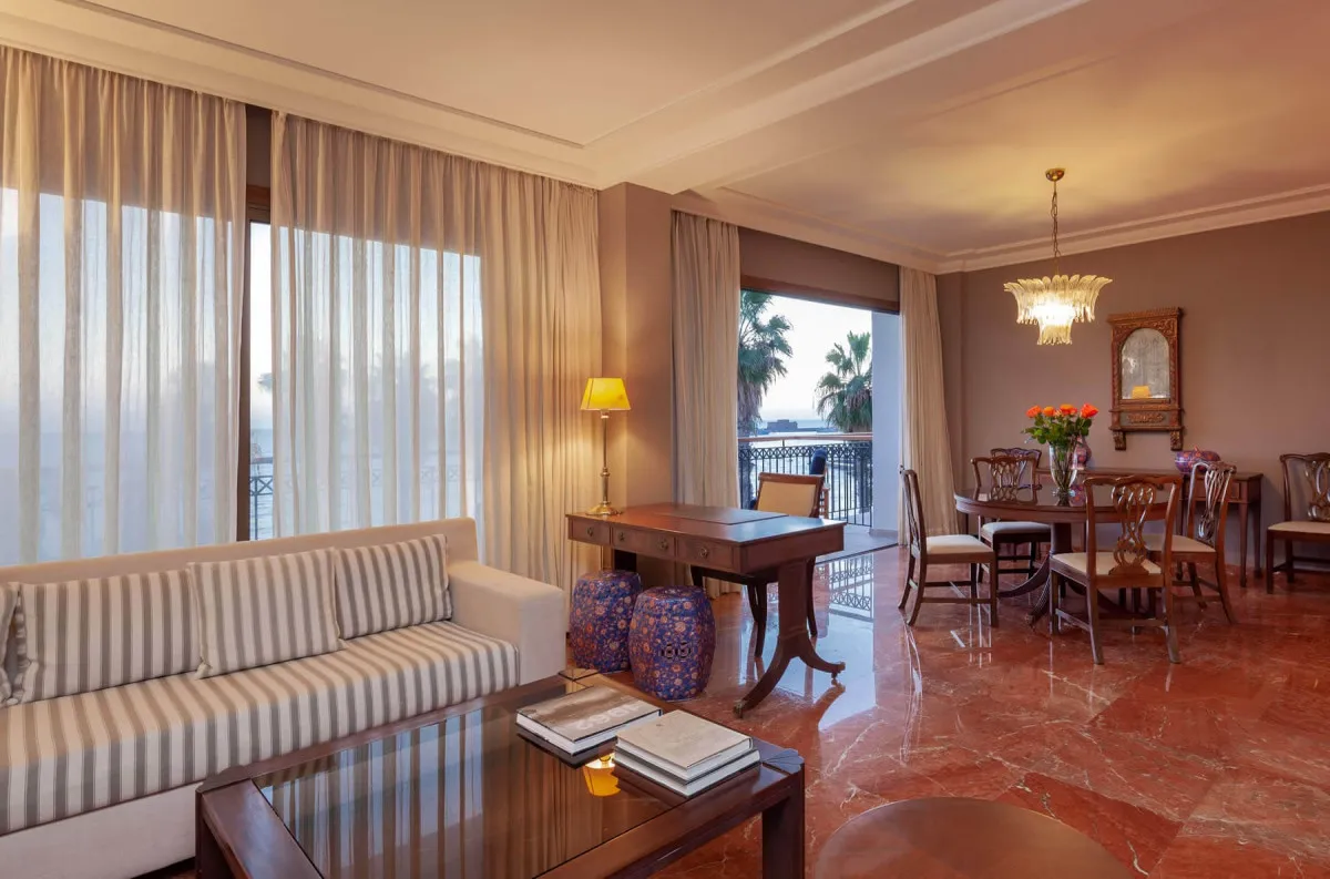 88 м2, люкс с двумя спальнями, видом на море, двумя спальнями с гардеробными, гостиной, совмещенной со столовой, балконом, ванной комнатой. Максимальное количество гостей: 6.Alecos Sea View Suite – One Bedroom