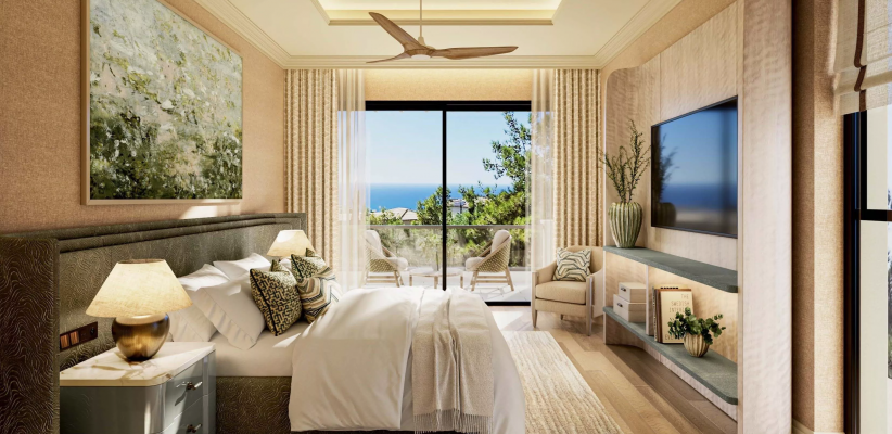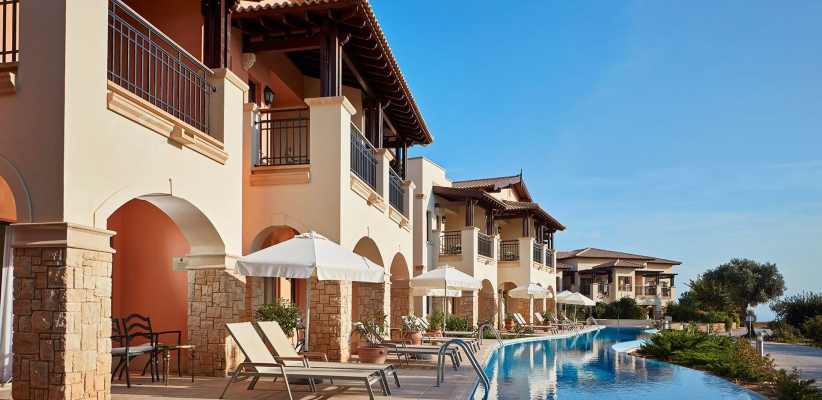 42 м2, количество гостей: 4Люкс с одной спальней, частным бассейном, видом на поле для гольфа и море