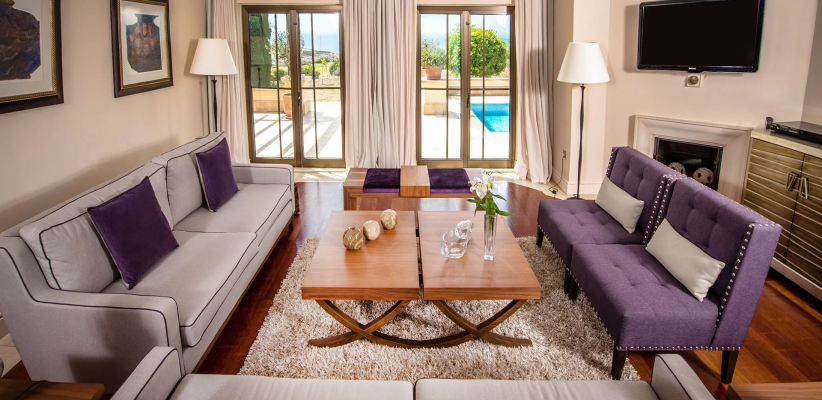 42 м2, количество гостей: 4Люкс «Афродита» с собственным бассейном, видом на поле для гольфа и море