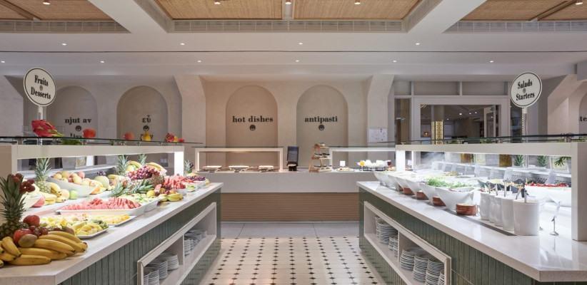 - Lavinia Main Restaurant — основной ресторан со шведским столом, открытой кухней и тематическими ужинами международной кухни