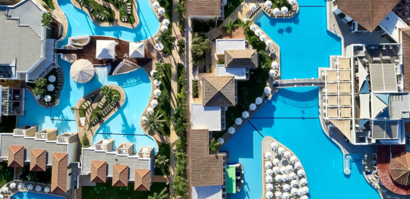 Отель занимает большую ухоженную территорию с садами и ориентирован на семейный отдых и активное времяпрепровождение. Его главной особенностью является впечатляющая лагунная система бассейнов площадью около 6600 м2 с мостиками, водопадами, фонтанами и джакузи, создающая атмосферу тропического курорта.