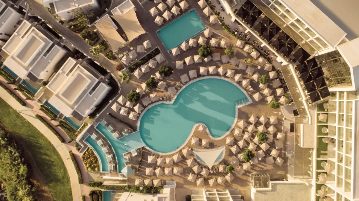 Концепция отеля построена по принципу «курортной деревни», где пространство организовано так, чтобы у каждого гостя было место для отдыха и развлечений. Территория комплекса включает зеленые сады, бассейны и разнообразные зоны активности, создавая атмосферу курорта, где можно как активно проводить время, так и наслаждаться спокойным отдыхом у моря.
