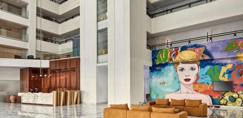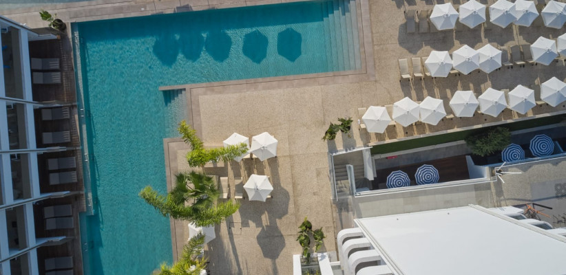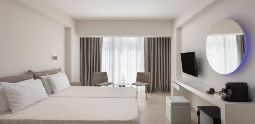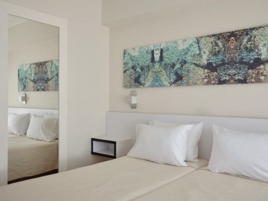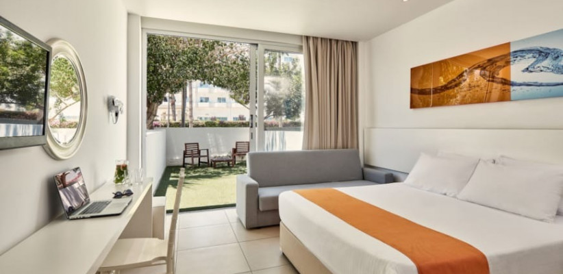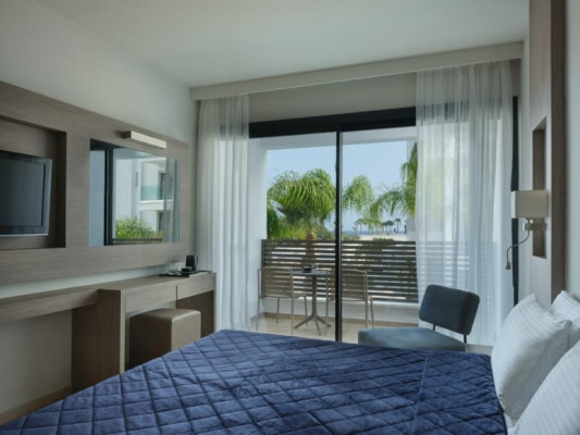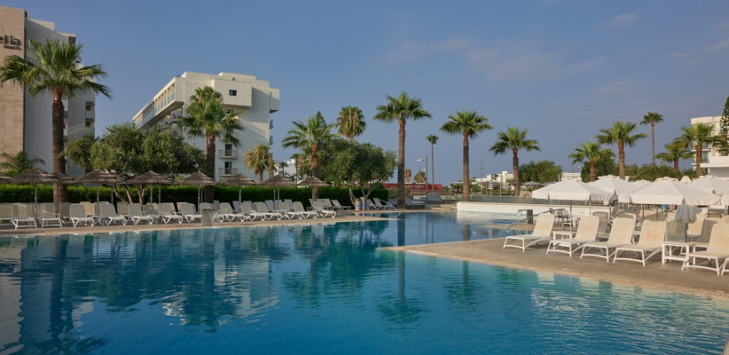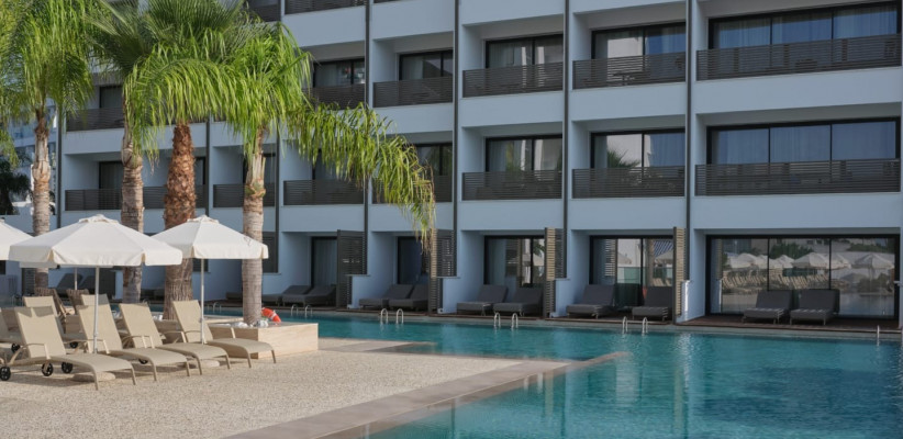 Главная особенность отеля – гармоничное сочетание центрального местоположения и спокойной курортной атмосферы внутри комплекса. Пространство оформлено в современном стиле с выразительным дизайном, вдохновленным искусством, стильными общественными зонами и продуманной инфраструктурой для отдыха. Несмотря на близость к оживленному центру Айя-Напы, территория отеля создает ощущение уединенного средиземноморского курорта с пальмами, солнечными террасами и расслабляющей атмосферой.