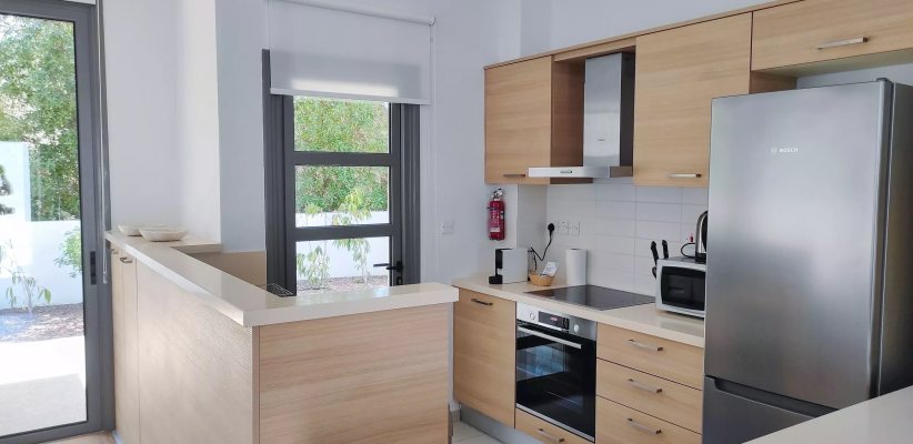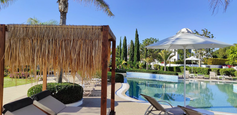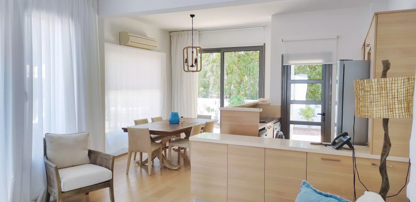 100 м2, апартаменты с видом на бассейн и зеленую территорию комплекса. В номере: три спальни, одна ванная комната, гостевой туалет, веранда (на первом этаже) или частный сад (на первом этаже). Максимальное количество гостей: 6.