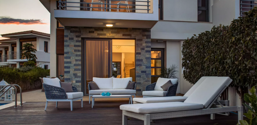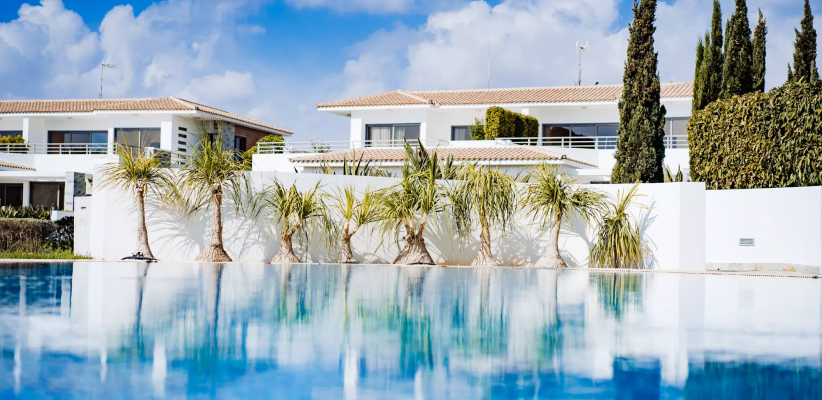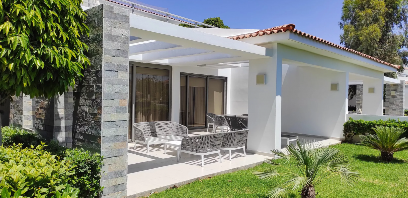 Комплекс расположен непосредственно у побережья Средиземного моря и предлагает просторные апартаменты и виллы с самостоятельным размещением. Многие виллы располагают частными бассейнами и садами, а с территории открываются прямые виды на море. На территории курорта есть общий открытый бассейн, джакузи, ресторан и бар у бассейна, фитнес-уголок и благоустроенные зеленые сады. Гости также могут воспользоваться бесплатным Wi-Fi и частной крытой парковкой. Курорт подходит как для короткого отдыха, так и для длительного проживания в течение всего года.