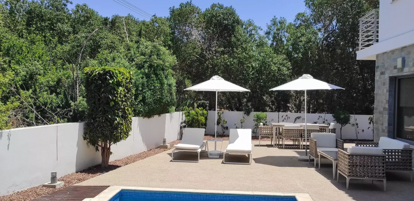 135 м2, вилла на первой линии у моря с прямым доступом к пляжу. В номере: три спальни, четыре ванные комнаты, частный бассейн, частный сад. Максимальное количество гостей: 6.Garden View Villas with Pool