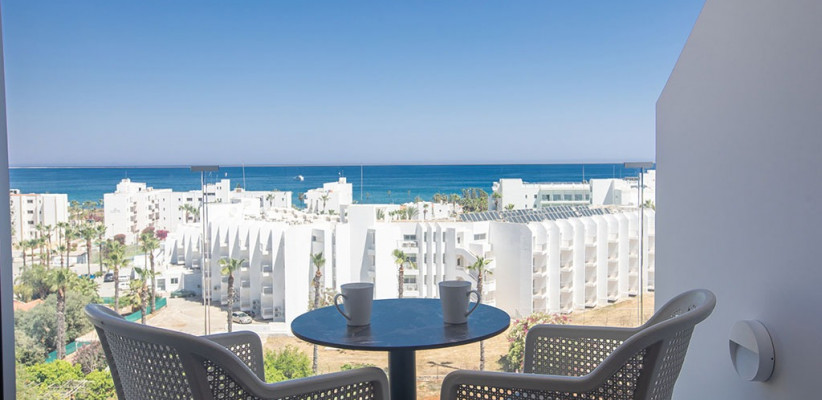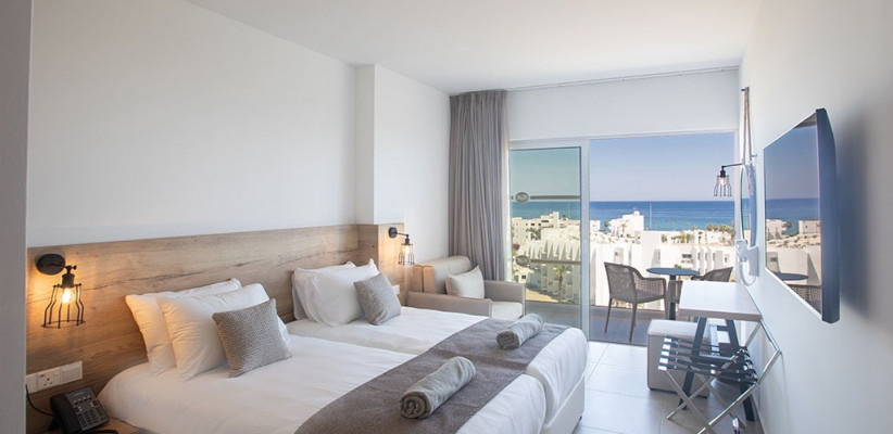 вид на море, балкон, две односпальные кровати и раскладной диванСемейная комната