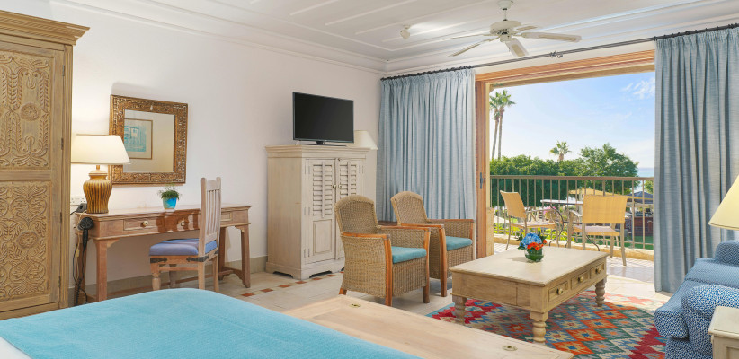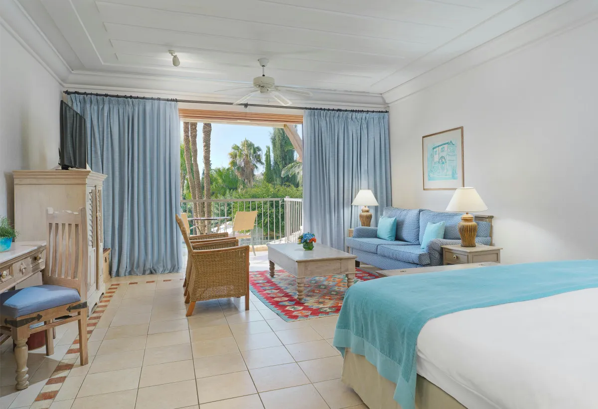 с видом на сад, бассейн или море, спальня с двуспальной кроватью размера king-size или с двумя односпальными кроватями. Максимальное количество гостей: 3.Executive Suite/ Эксклюзивный сюит