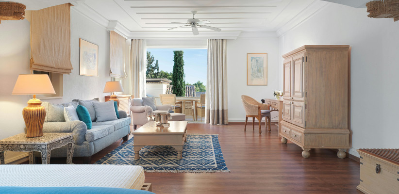 с видом на сад, с боковым или прямым видом на море, спальня с двуспальной кроватью размера king-size или с двумя односпальными кроватями. Максимальное количество гостей: 3 или 2 взрослых + 2 ребенка.Family Suite/ Семейный