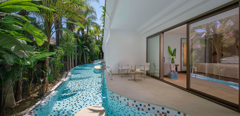 - Отдельная территория в саду с собственным «речным» бассейном и джакузи, доступная только для взрослых.
