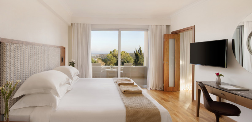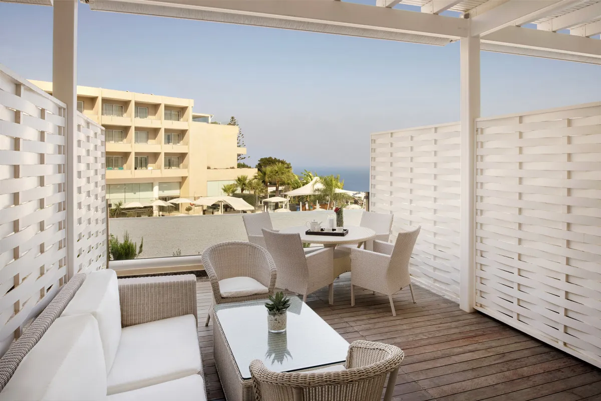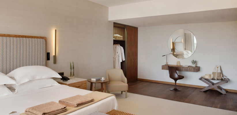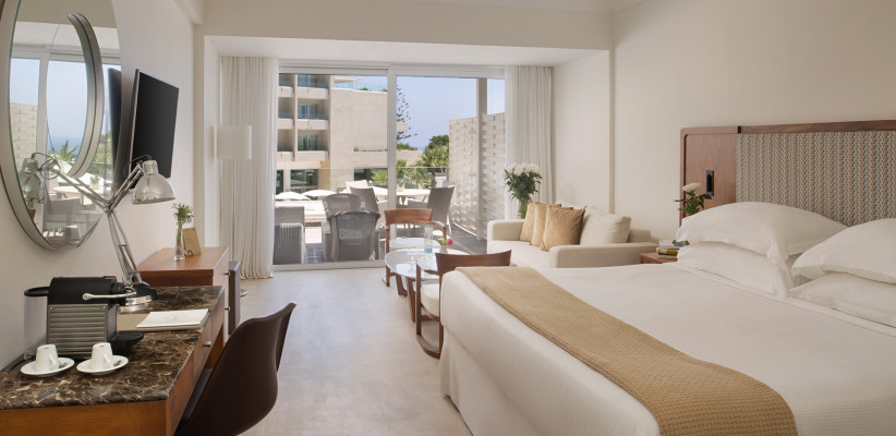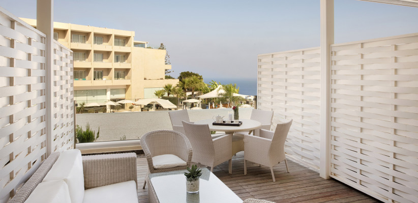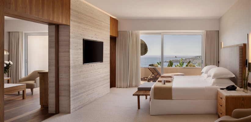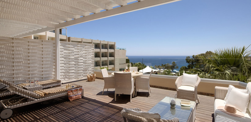 53 м2, с видом на море и на бассейн, спальня с двуспальной кроватью, две односпальные кровати. Максимальное количество гостей: 4.
