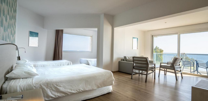45 м2, балкон, вид на море, двуспальная кровать + две односпальные кровати, зона отдыха с диваном. Максимальное количество гостей: 4