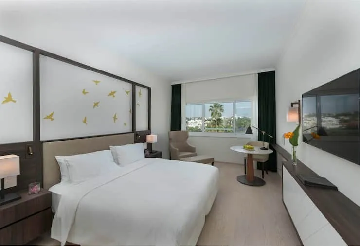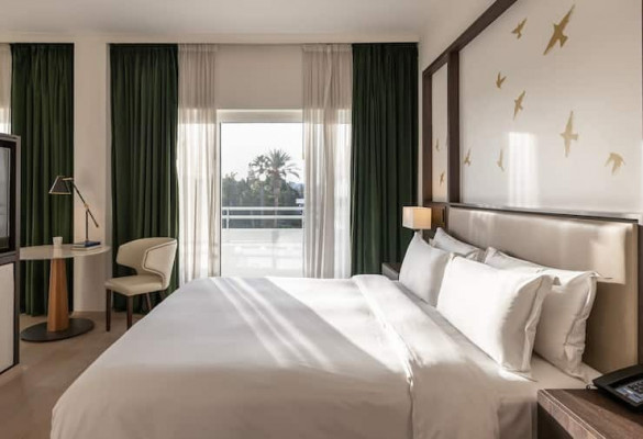 люкс с одной спальней с кроватью размера king-size/ двуспальной кроватью, отдельной гостиной, а также обеденной и рабочей зоной, доступ в лаунж. Количество гостей: до 5King Pool View Room/ номер с двуспальной кроватью и видом на бассейн