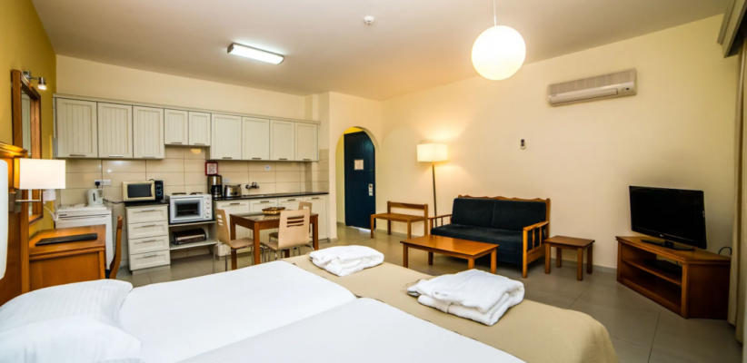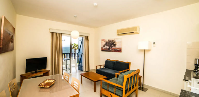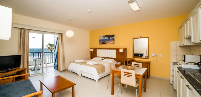 две односпальные кровати, диван-кровать, мини-кухня, меблированный балкон или терраса с видом на море. Количество гостей: 3One Bedroom Inland View Superior/ Апартаменты с одной спальней