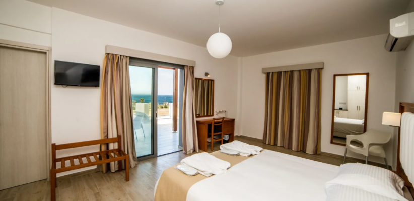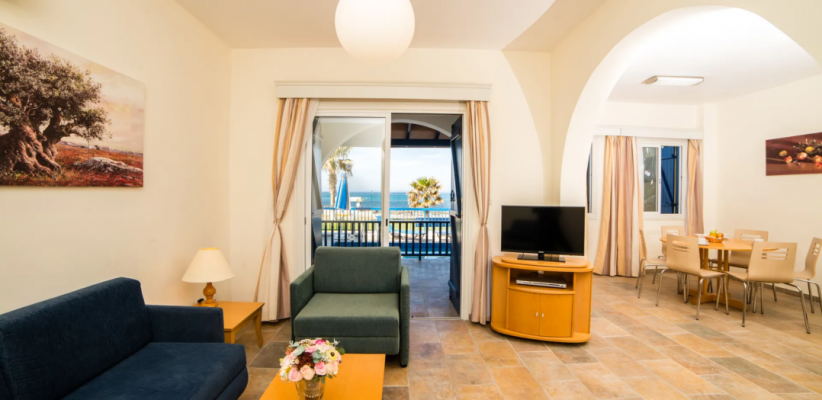 две спальни, четыре односпальные кровати, отдельная гостиная с двумя диванами-кроватями, мини-кухня, меблированный балкон или терраса с панорамным видом на море. Количество гостей: 6Two Bedroom Sea View Superior/ Апартаменты с двумя спальнями