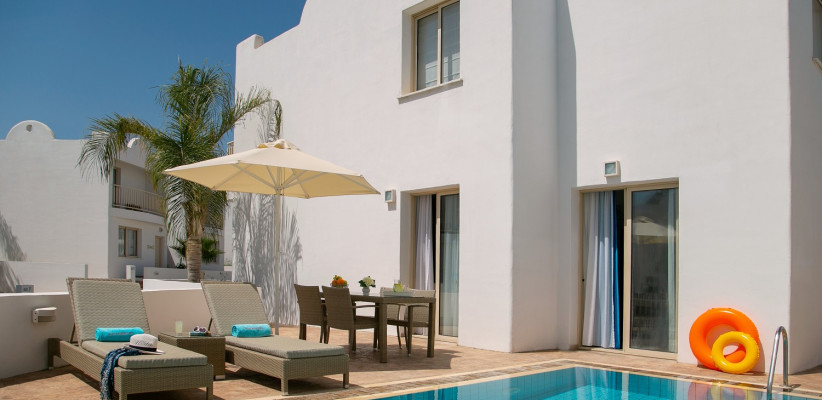 Louis Althea Kalamies Luxury Villas объединяет престижное расположение у песчаного побережья Протараса, формат уединенного проживания в виллах с частными бассейнами и доступ к расширенной курортной инфраструктуре, создавая комфортные условия для отдыха у самого моря.