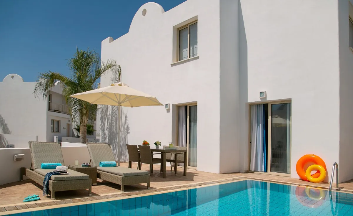 Одной из ключевых особенностей комплекса является доступ гостей к инфраструктуре расположенного рядом курортного отеля Louis Althea Beach. Это позволяет сочетать приватность проживания в вилле с возможностью пользоваться дополнительными сервисами и удобствами полноценного курорта.