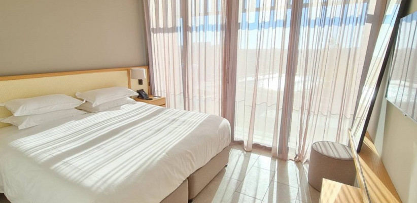 104 м2, одна или две крытые веранды, вид на гольф-поле/ горы/ долину, две спальни, гостиная, кухня и обеденная зона, две ванные комнаты. Доступны варианты Garden, Mountain, Golf или Luxe Spa SuitesEzousa Suite/ Люкс