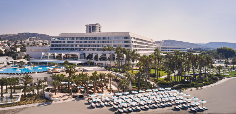 Отель на первой береговой линии имеет частный оборудованный пляж протяженностью 300 м, отмеченный Голубым флагом. Шезлонги, зонтики, полотенца предоставляются бесплатно. Доступна аренда частных кабан с дополнительными услугами.