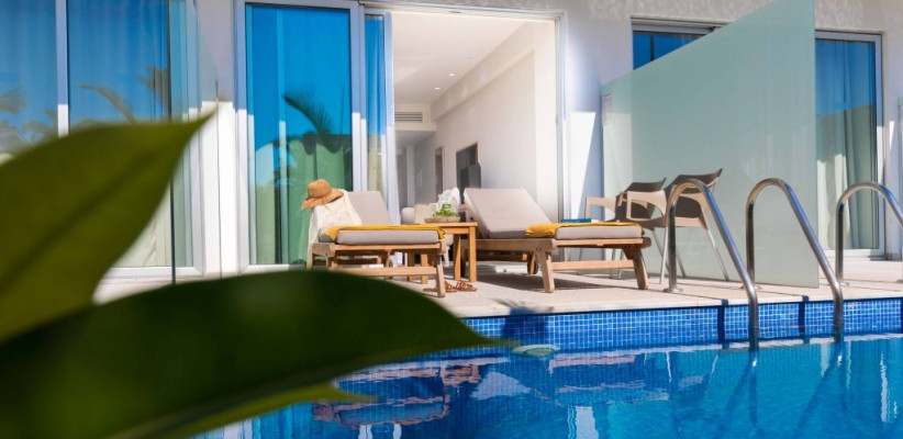 45 м2, вид на море и бассейн, спальня, гостиная, диван-кровать, балкон. Количество гостей: 4Executive Suite/ Представительский люкс
