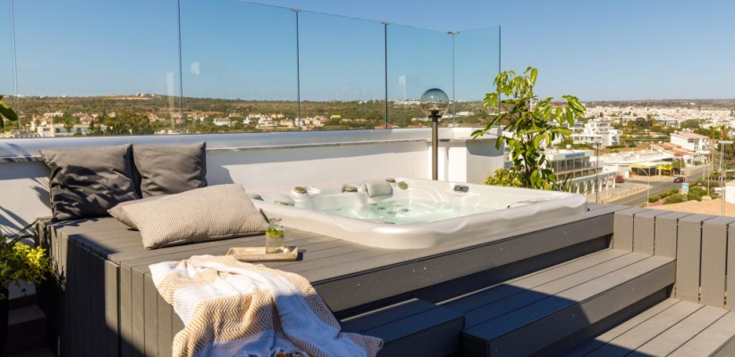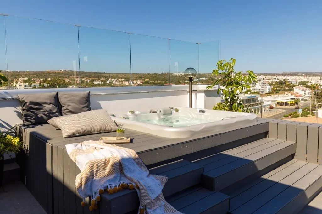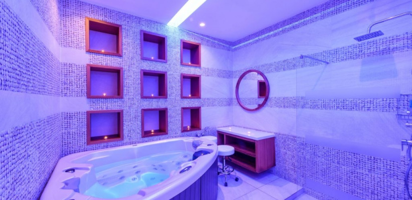 40 м2, вид на территорию, спальня, гостиная, диван-кровать, балкон с джакузи, 6 этаж. Количество гостей: 4