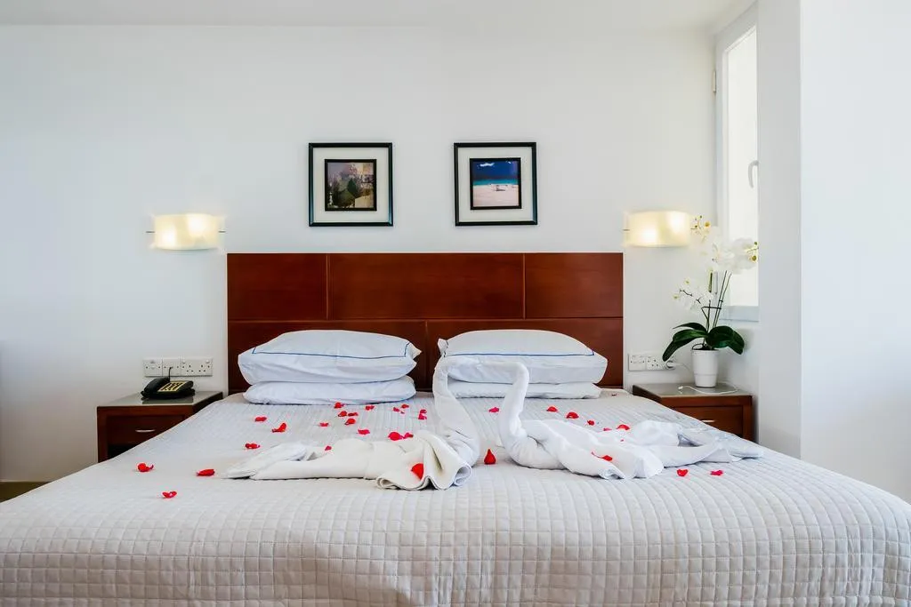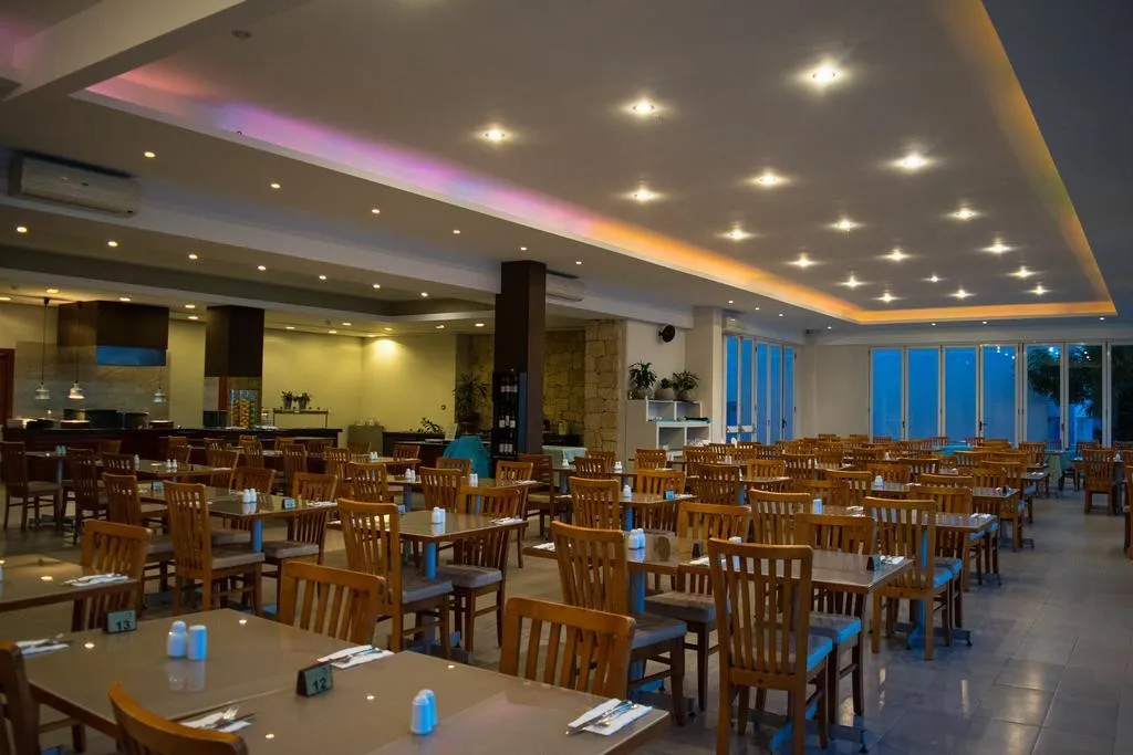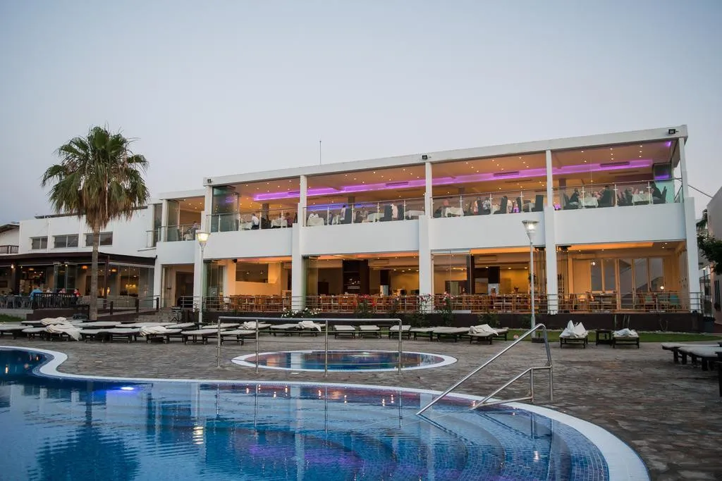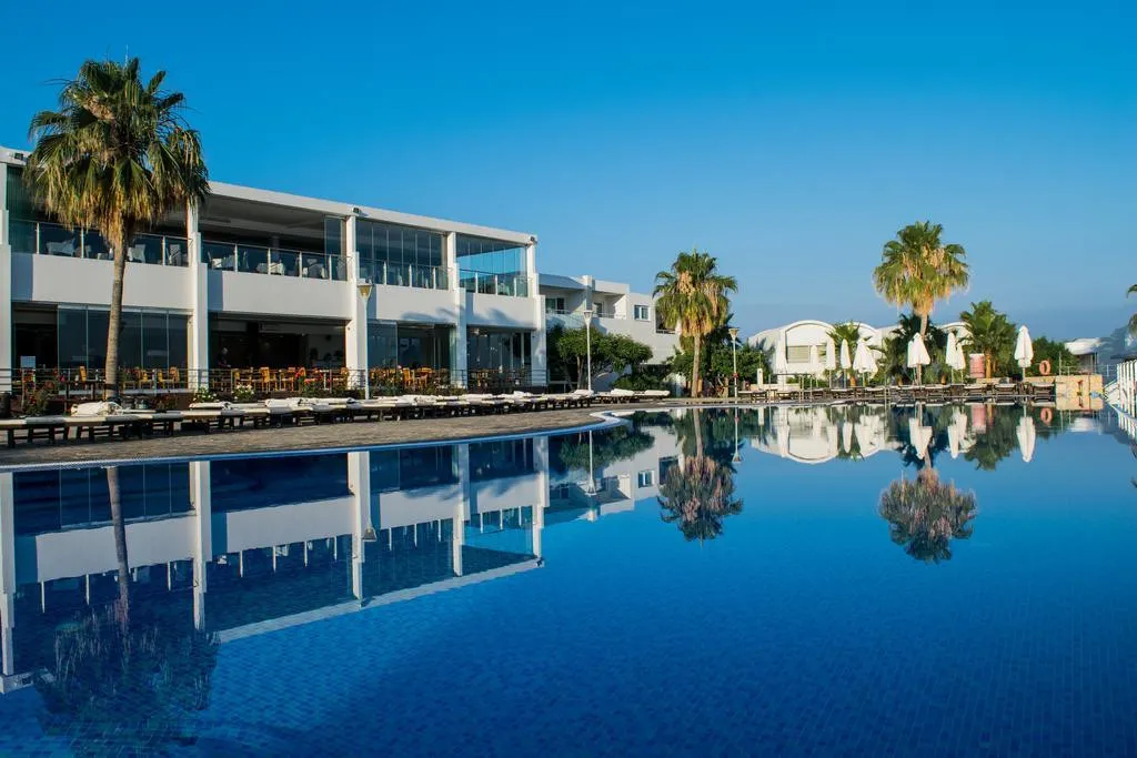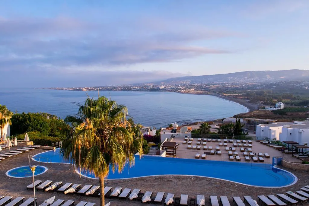На территории работают рестораны и бары, есть несколько бассейнов, включая панорамный инфинити-бассейн и крытый бассейн. Гостям доступны спа-центр, спортивные активности и анимация в сезон. Отель подойдет как для спокойного отдыха, так и для активных путешествий по Пафосу.