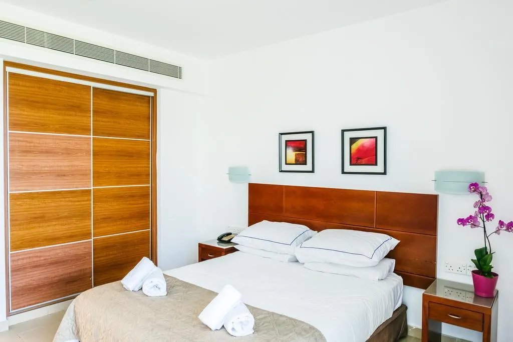 Комплекс включает более 200 номеров и апартаментов различных категорий, большинство из которых имеют балконы или террасы с видом на море или территорию. Номера выполнены в формате студий и апартаментов с кухонной зоной, что удобно для длительного проживания и семейного отдыха.