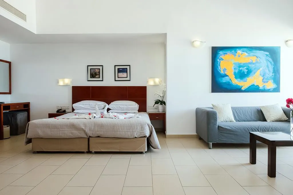 39 м2, с видом на море; студия с зоной отдыха; двуспальная или две односпальные кровати и диван-кровать; размещение до 4 гостей.