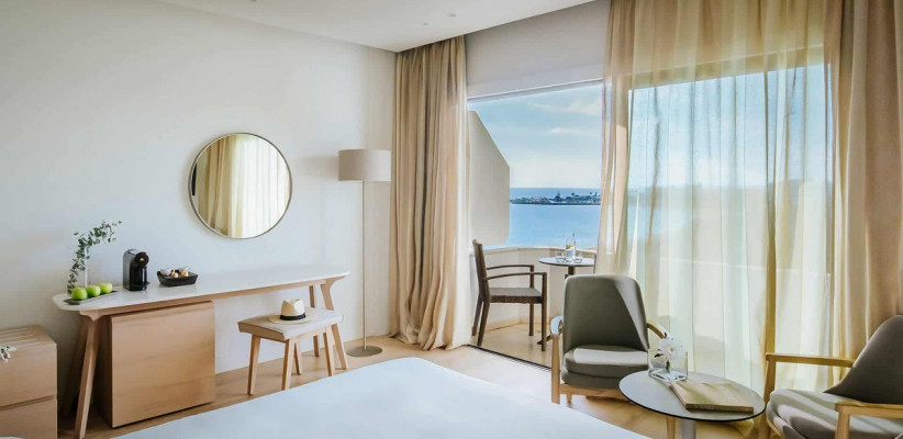 Alion Beach расположенный на первой линии моря в Айя-Напе, идеально сочетает спокойный пляжный отдых с высоким уровнем сервиса и современным комфортом. Туристы наслаждаются прямым доступом к песчаному пляжу Kryou Nerou, панорамными видами, изысканными ресторанами и удобными номерами с балконами. Отель подойдет как для романтического путешествия, так и для семейного отдыха, ценящего тишину, стиль и близость моря. Расстояние до международного аэропорта Ларнаки составит приблизительно 55 км.