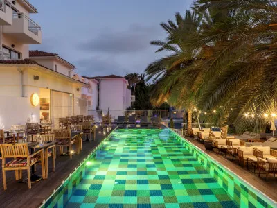 На территории расположены несколько бассейнов, включая гидромассажный и крытый бассейн, рестораны и бары, а также wellness-зона. Отель работает по концепции premium all inclusive и ориентирован на расслабленный отдых пар и индивидуальных путешественников.