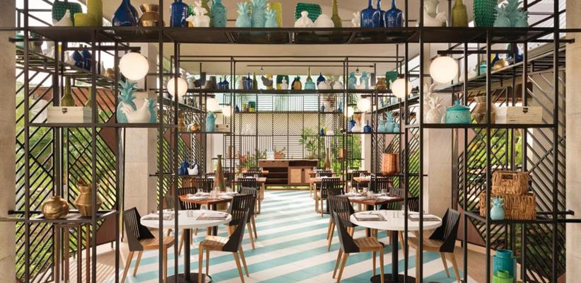 На территории отеля работают: ресторан-буфет Caoba – шведский стол (международная кухня), Sakura – ресторан азиатской кухни, Mare Grill – рыбный ресторан, Noor – ресторан средиземноморской кухни, Chinola – ресторан национальной доминиканскй кухни, лобби-бар, кофе и закуски в Aroma, Premium VIP-лаунж (эксклюзивно для гостей номеров премиум), Swim-Up Soleil – бар около бассейна, Swim-Up Blue бар около бассейна в Premium Club.